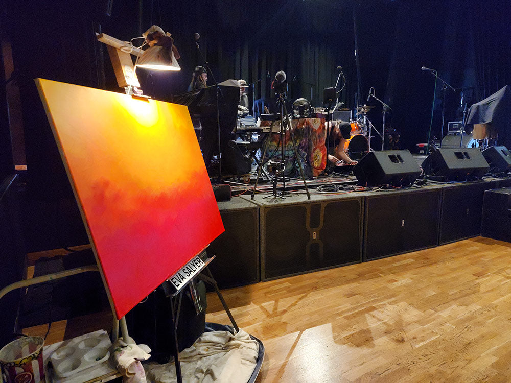 Eva painted all night at an absolutely legendary 4/20 show at Miners Foundry, in Nevada City.